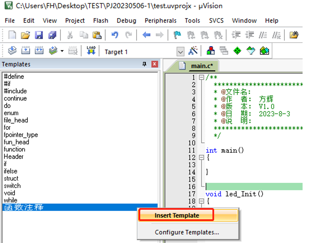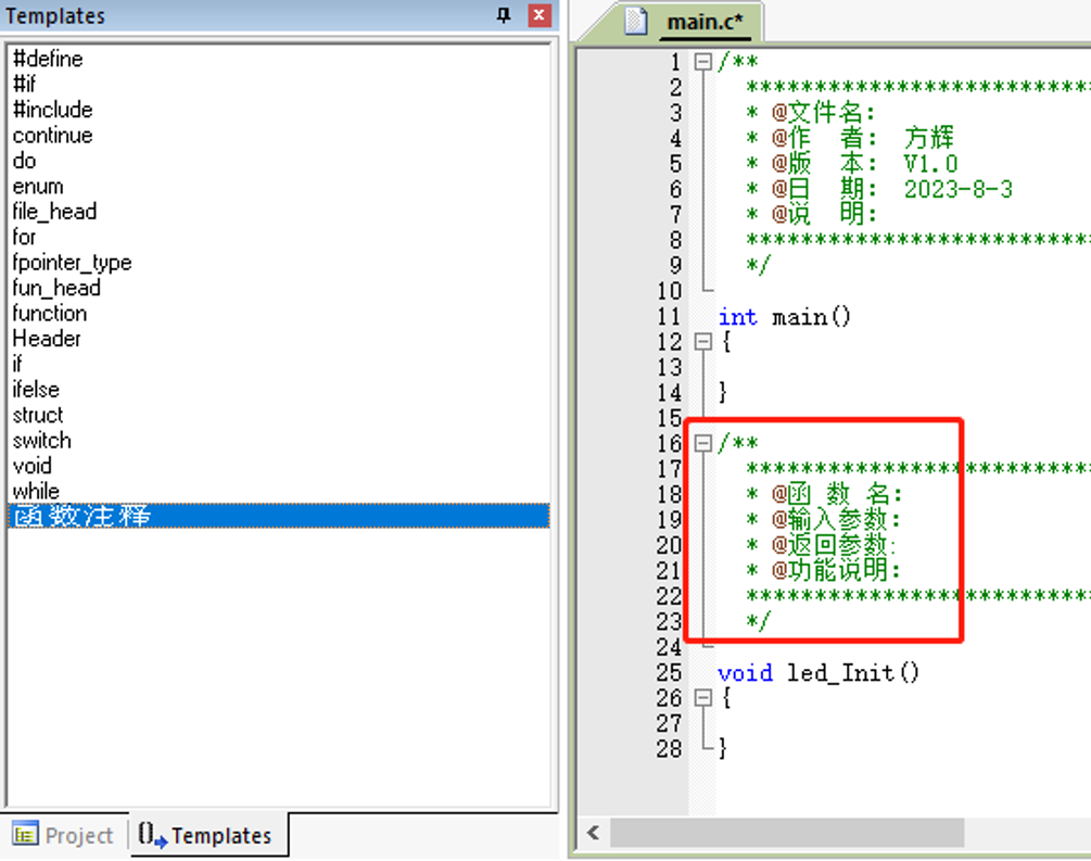 在書寫程序的時候需要對函數(shù)進(jìn)行一些注釋,每次拷貝都需要來回切換界面,使用模板就可以方便地添加函數(shù)注釋。