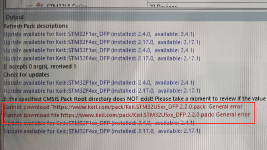 PackInstaller報(bào)錯信息為:Cannot download https://www.keil.com/pack/Keil.STM32U5xx_DFP.2.2.0,pack: General error