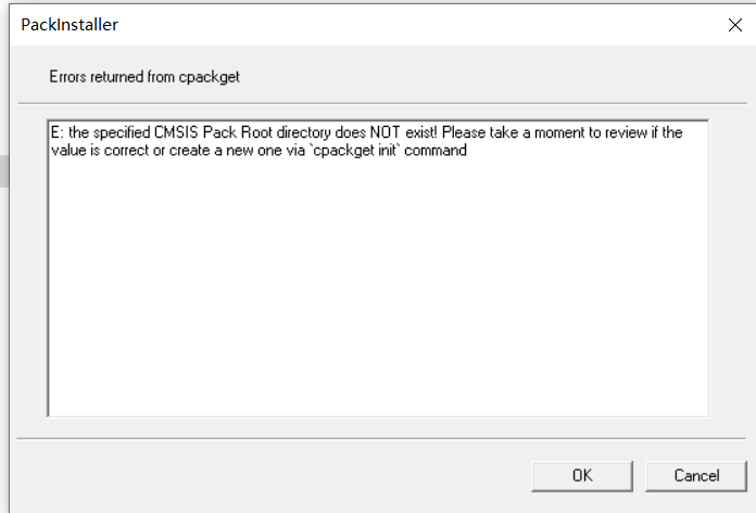 pack包報(bào)錯信息為:E: the specified CMSIS Pack Root directory does NOT exist! Please take a moment to review if the value is correct or create a new one via?cpackget init?command