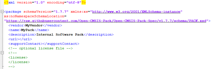 a. 把vendor.pack_name.pdsc更改為MyVendor.MyPack.pdsc (其中MyVendor是<vendor>中定義的名字;MyPack是 <name>中定義的名字);