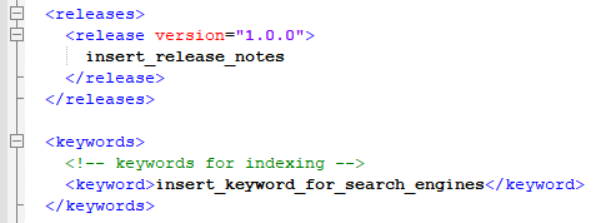 2) 添加版本信息和關(guān)鍵字: