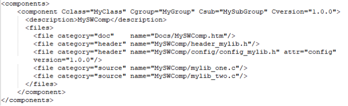 <package> 聲明模板(schema)文件的版本和用于驗(yàn)證PDSC文件的xsd文件的路徑。
