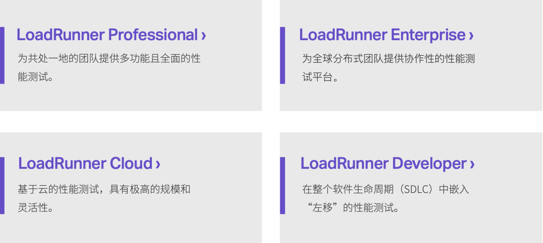 LoadRunner 提供了一套集成的企業級性能工程解決方案,可以協同或獨立運作。無論使用何種 LoadRunner 解決方案,您都可以充滿自信地測試您復雜的工作負載、壓力和性能場景,跨越傳統、Web 和移動應用端,并受益于共享能力和通用技術。