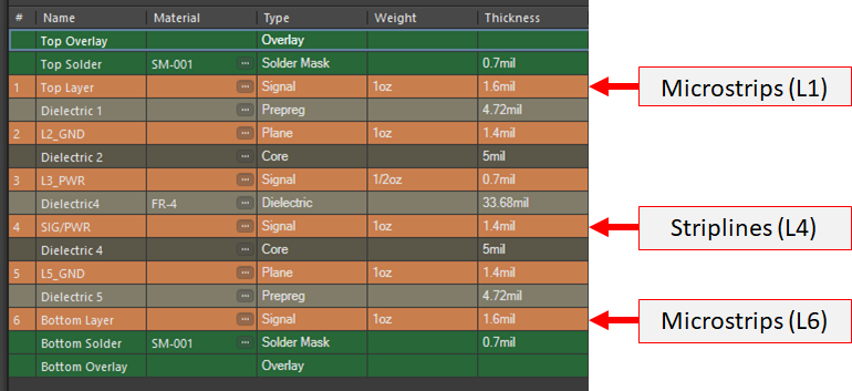 眾所周知,微帶線、帶狀線或共面布置的層厚會影響數字或模擬信號的損耗。明智地選擇需要支持高速/高頻信號的信號層中的電介質厚度可以解決上述損耗的一個方面。此外,為外露走線選擇合適的材料和電鍍材料可以降低高頻損耗,例如在需要精確信號完整性的毫米波設計中??傊?,這些步驟有助于確保信號在路由到互連末端時經歷低損耗。