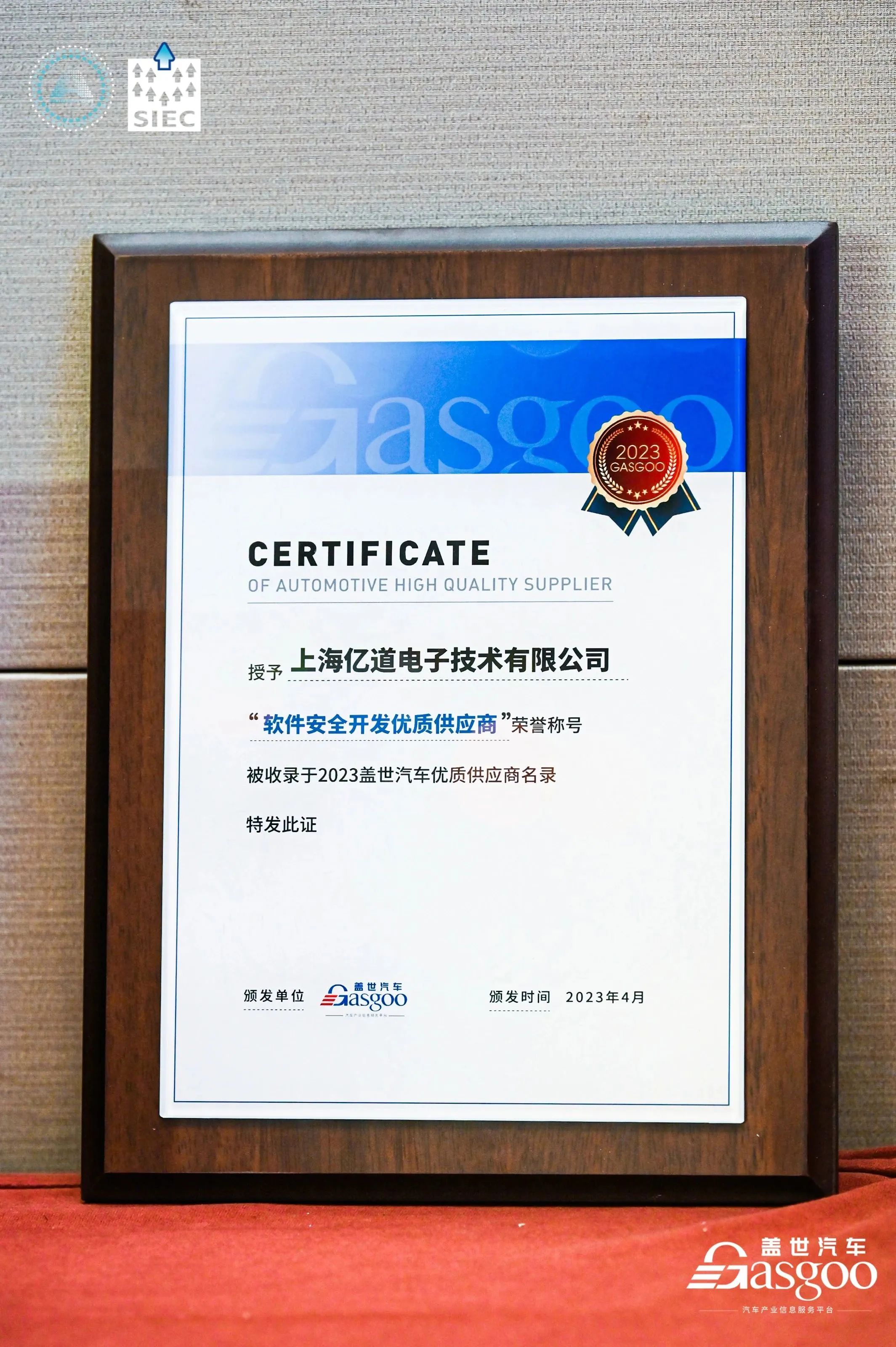 大會最后,進行了2023蓋世汽車“信息安全與數據安全”優質供應商證書授予儀式。旨在促進汽車上下游產業鏈交流與信息互通,推動汽車行業的健康發展,同時幫助更多優質、有潛力的供應商進入采購商視野,并為采購商尋源、國產供應商替代和供應商資源儲備工作添磚加瓦。億道電子也榮獲“軟件安全開發優質供應商”榮譽稱號。