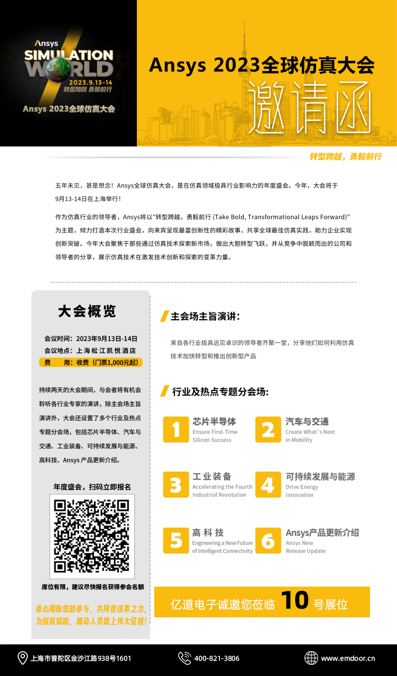 即將在9月舉辦的Ansys 2023全球仿真大會中,推出「可持續發展與能源」專題分會場,將重點介紹仿真在風能、光伏、氫能、化學儲能和電力設備領域的應用,探討如何通過仿真技術使能源轉型更加安全、可靠和高效,關注能源生產和轉化的效率,歡迎報名參會。