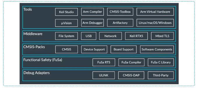 CMSIS 軟件包系統有助于輕松管理產品生命周期,在編寫第一行代碼到完成和維護的過程中提供出色的支持。