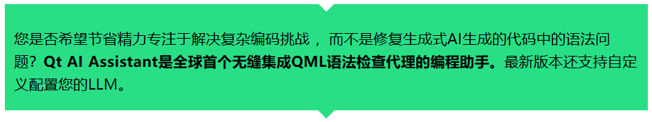 QML語法檢查器也被用于/fix和/review智能命令,為LLMs提供更多上下文。該功能可在Qt Creator的AI Assistant偏好設(shè)置中禁用。