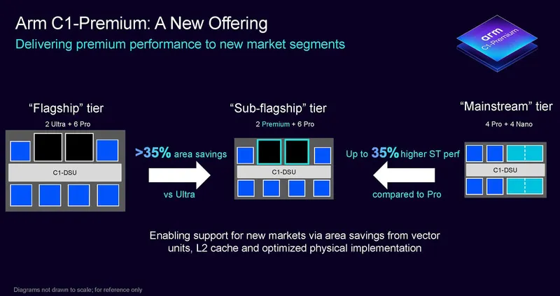 C1-Premium是新出的次旗艦核心,面積比C1-Ultra小35,性能參考Cortex-X4。