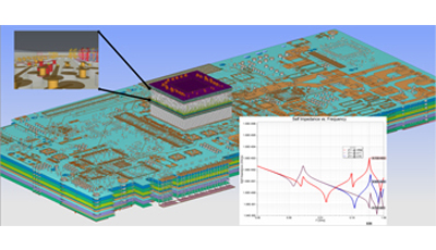 使用平面諧振求解器,用戶能夠預測PCB或封裝的天然腔體諧振。該功能預測了能導致供電網絡中斷,產生輻射泄漏的諧振。該解決方案讓用戶實現在PCB或封裝內部添加所有相關組件的IC晶片網絡、SPICE和Touchstone模型。