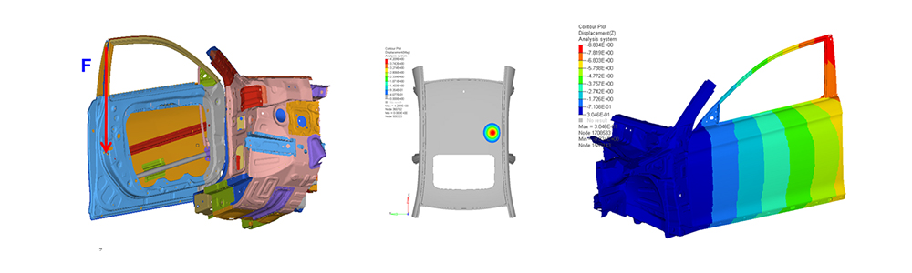 進行行李箱沖壓座椅、側門強度、覆蓋件Slam分析。