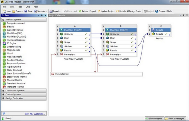 Fluent完全集成在ANSYS Workbench環(huán)境中,該平臺可支持實現(xiàn)高效靈活的工作流、CAD連接以及強大的幾何結構建模和網(wǎng)格剖分功能。內(nèi)置的參數(shù)管理器使其方便快速探索多個設計選項。