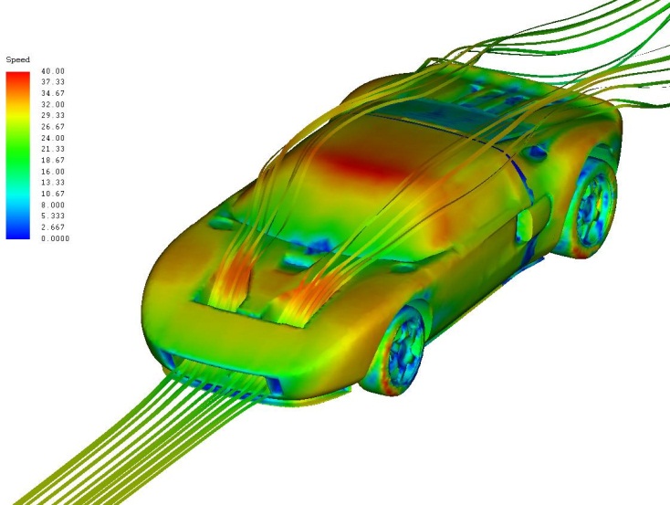 · 整車外流場分析 以概念設(shè)計(jì)轎車的造型為研究對象,通過使用軟件Ansys Fluent對該車型進(jìn)行外流場分析,模擬出整車滿載下的風(fēng)阻系數(shù)、表面壓力分布云圖、車身流線分布情況等。