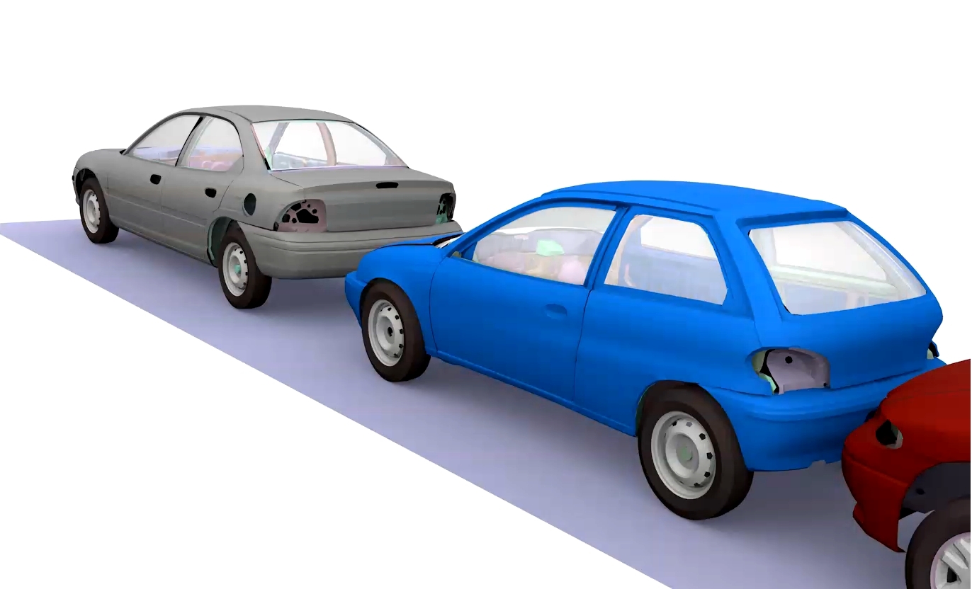 · 整車側(cè)面碰分析 以轎車結(jié)構(gòu)和假人為研究對象,通過使用軟件Ls-dyna對整車側(cè)面碰撞進(jìn)行了分析,通過車身變形模式,車身加速度和速度,車身侵入量三個(gè)指標(biāo)的對比。
