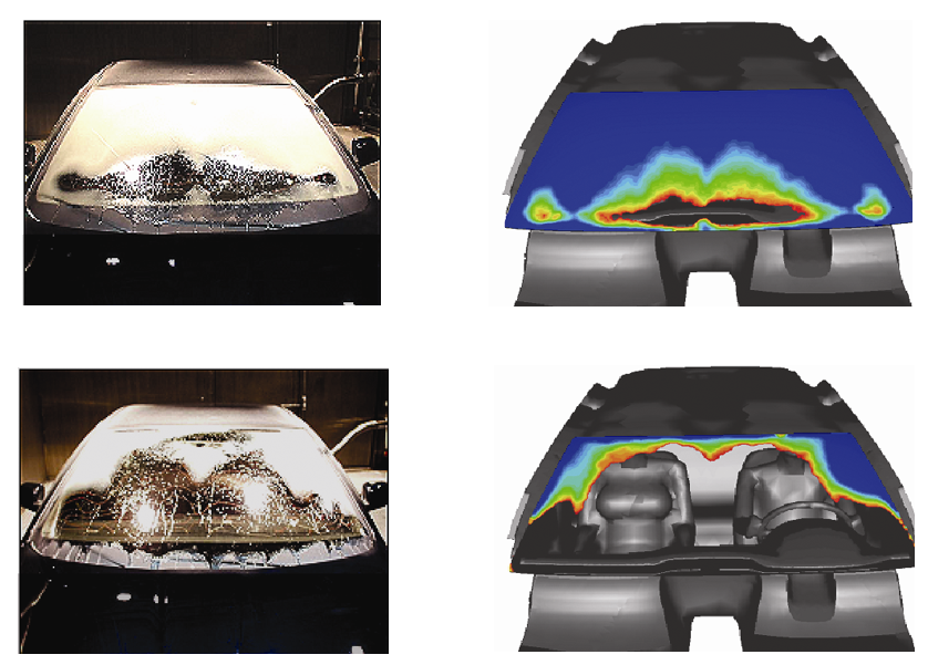 · 玻璃加熱模,除霜分析仿真 針對新上市的某車型,利用Ansys CFD軟件成功模擬了該車前擋風(fēng)玻璃的穩(wěn)態(tài)速度流場以及除霜瞬態(tài)過程中的物理現(xiàn)象。