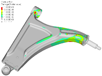 · 基于應(yīng)變疲勞耐久分析 以轎車前控制臂為研究對象,通過使用軟件Ansys nCode designlife的應(yīng)變疲勞分析功能,分析了其在特定載荷下的損傷分布。