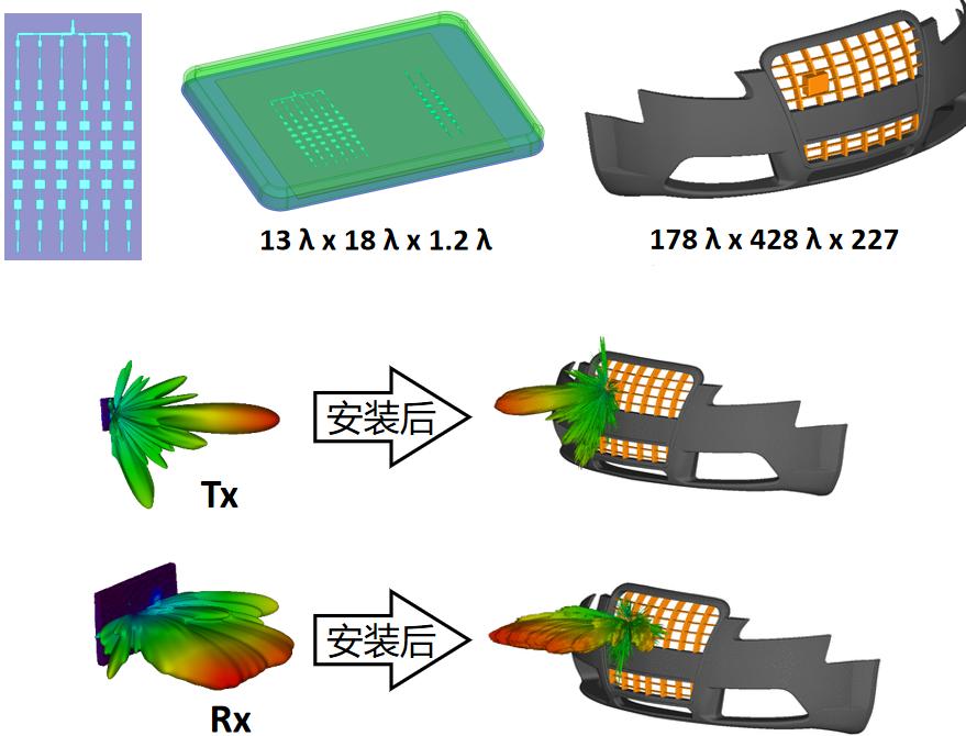· 汽車?yán)走_(dá)天線布局 以汽車毫米波雷達(dá)為研究對(duì)象,使用軟件ANSYS HFSS,分析了汽車?yán)走_(dá)布局前后輻射方向圖及性能參數(shù)。
