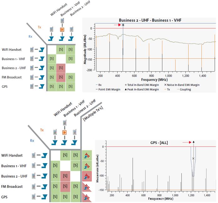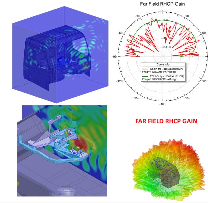 · 車載多射頻系統(tǒng)RFI分析 以車載多射頻系統(tǒng)為研究對(duì)象,使用軟件ANSYS HFSS,分析了多個(gè)射頻通信系統(tǒng)共址且同時(shí)運(yùn)行的復(fù)雜情景,并且包含定位干擾問題所需的所有全系統(tǒng)級(jí)的相互作用,用于干擾優(yōu)化方案的評(píng)估。