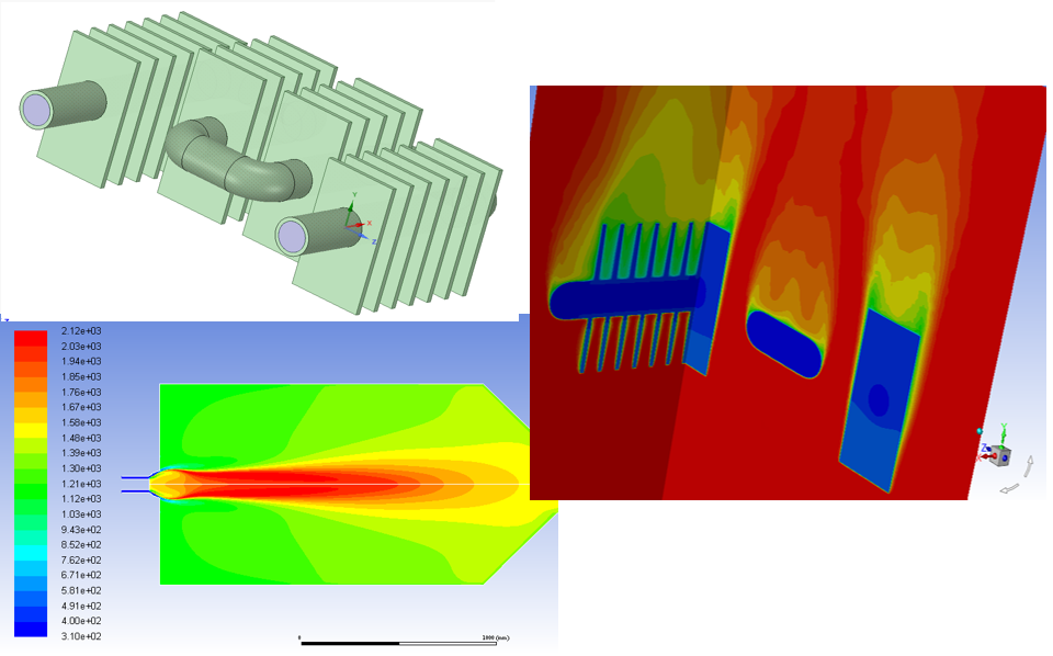 · 熱水器設備傳熱過程優化 以熱水器為研究對象,使用軟件ANSYS Fluent,分析了燃燒室內燃燒的溫度場分布,同時對散熱片進行了高度和寬度的結構優化,得到了最佳散熱片尺寸。