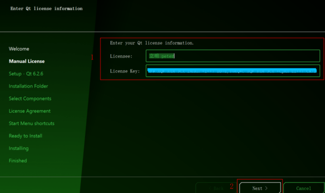 2)、斷開電腦外網,在安裝界面輸入“Licensee ”和“License Key”,再點擊“Next”,安裝就可以進行下去了。