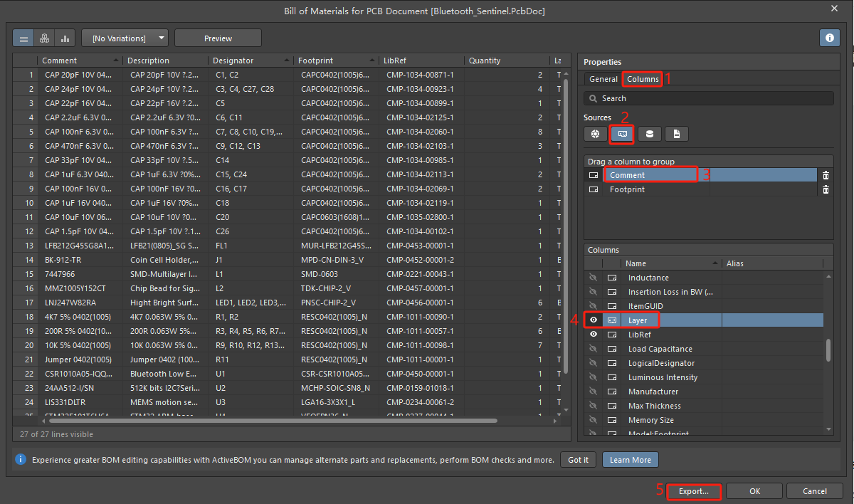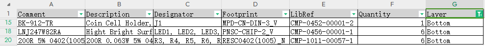 解決如何在PCB中雙面都有物料,導(dǎo)出BOM清單帶有層信息。