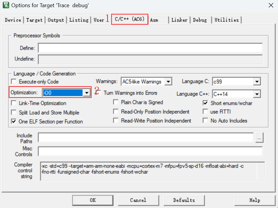 1)、打開工程的build option窗口,把編譯的優先級下調到-O0,如圖4-1所示: