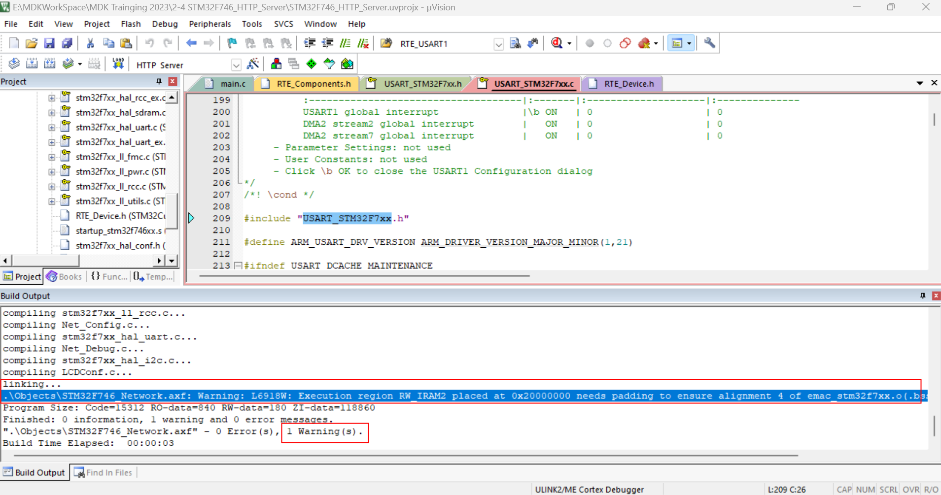 在Keil MDK中,由于RAM設置不當引出的警告問題,如圖2-1所示: