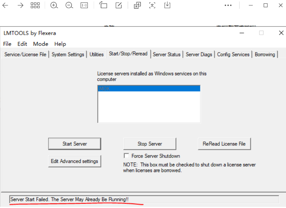 由于操作者權限引起的Flexnet服務無法啟動,錯誤提示如圖2-1所示: