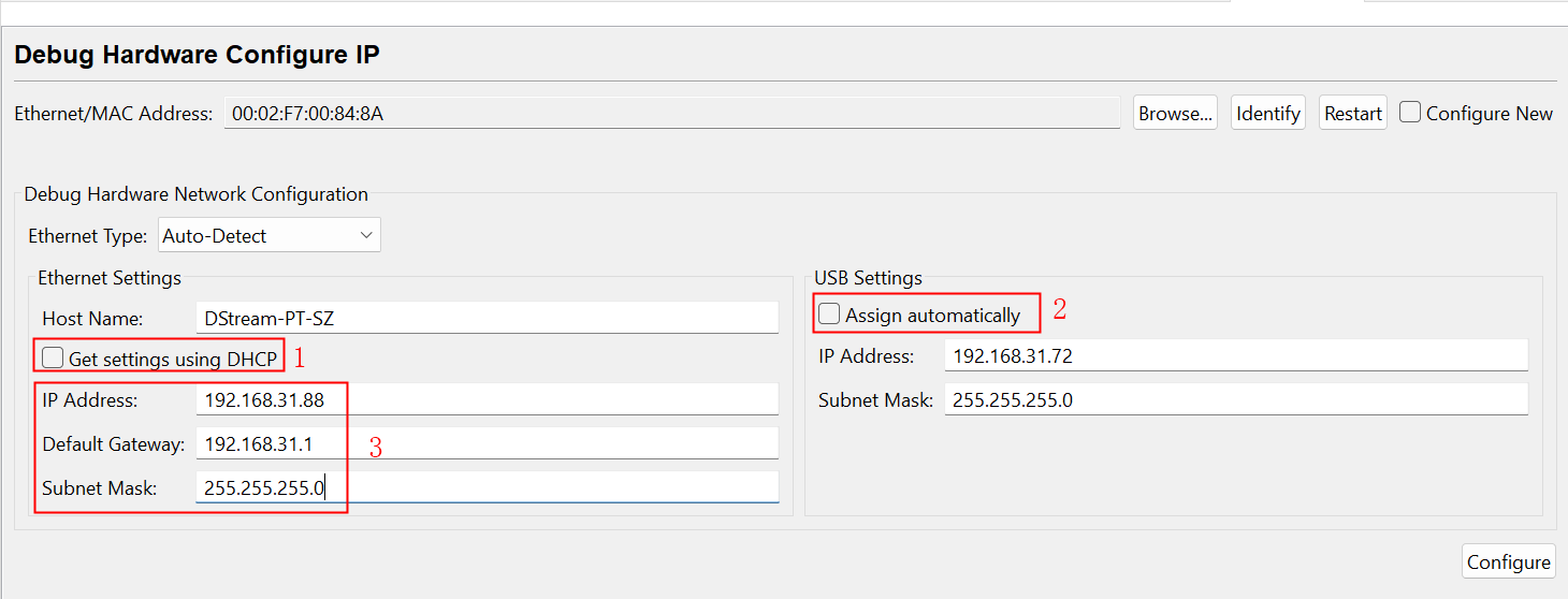 2)、把“Assign automatically”的勾去掉,輸入正確的“Host Name”和IP等,再點擊“Configure”,如圖4-2所示: