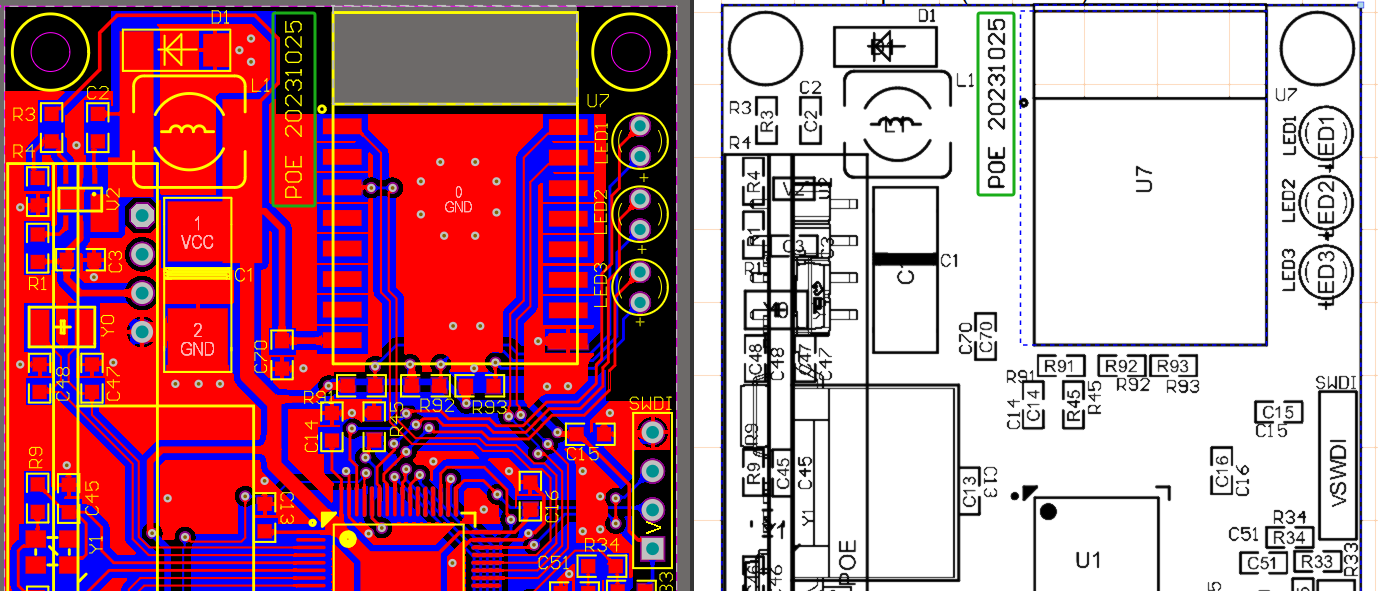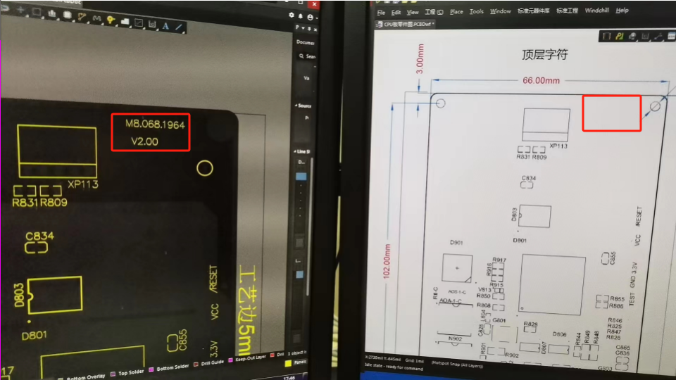 3、這時在圖 4 中就可以看到和 PCB 一致的絲印顯示,即可以顯示線路板編號等 Text 信息。