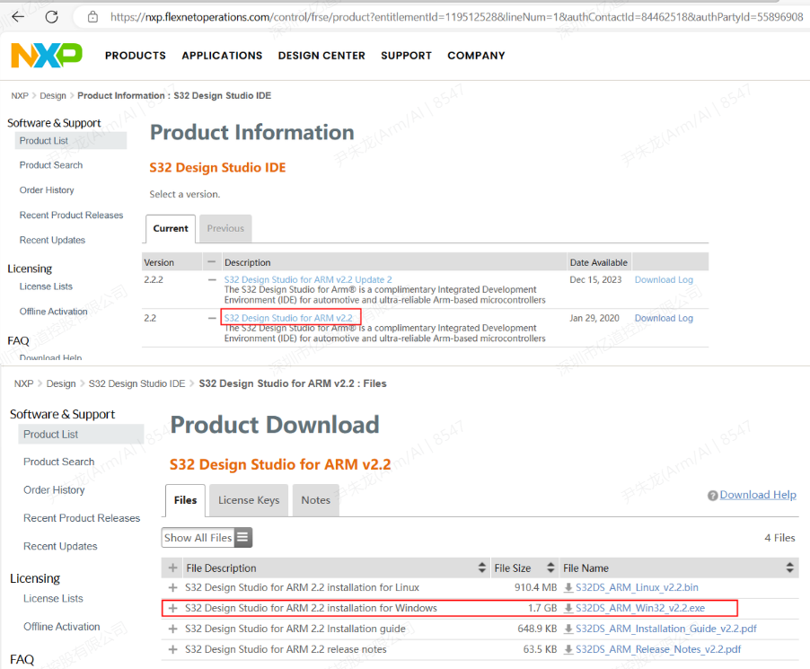 如下圖步驟,選擇版本,下載S32DS_ARM_Win32_v2.2.exe程序。