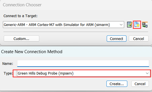 2)、點擊標記處快捷鍵,新建連接方案,設置連接方案的名稱,Type類型選擇為<Renesas V850/850E ICE (850eserv2)>