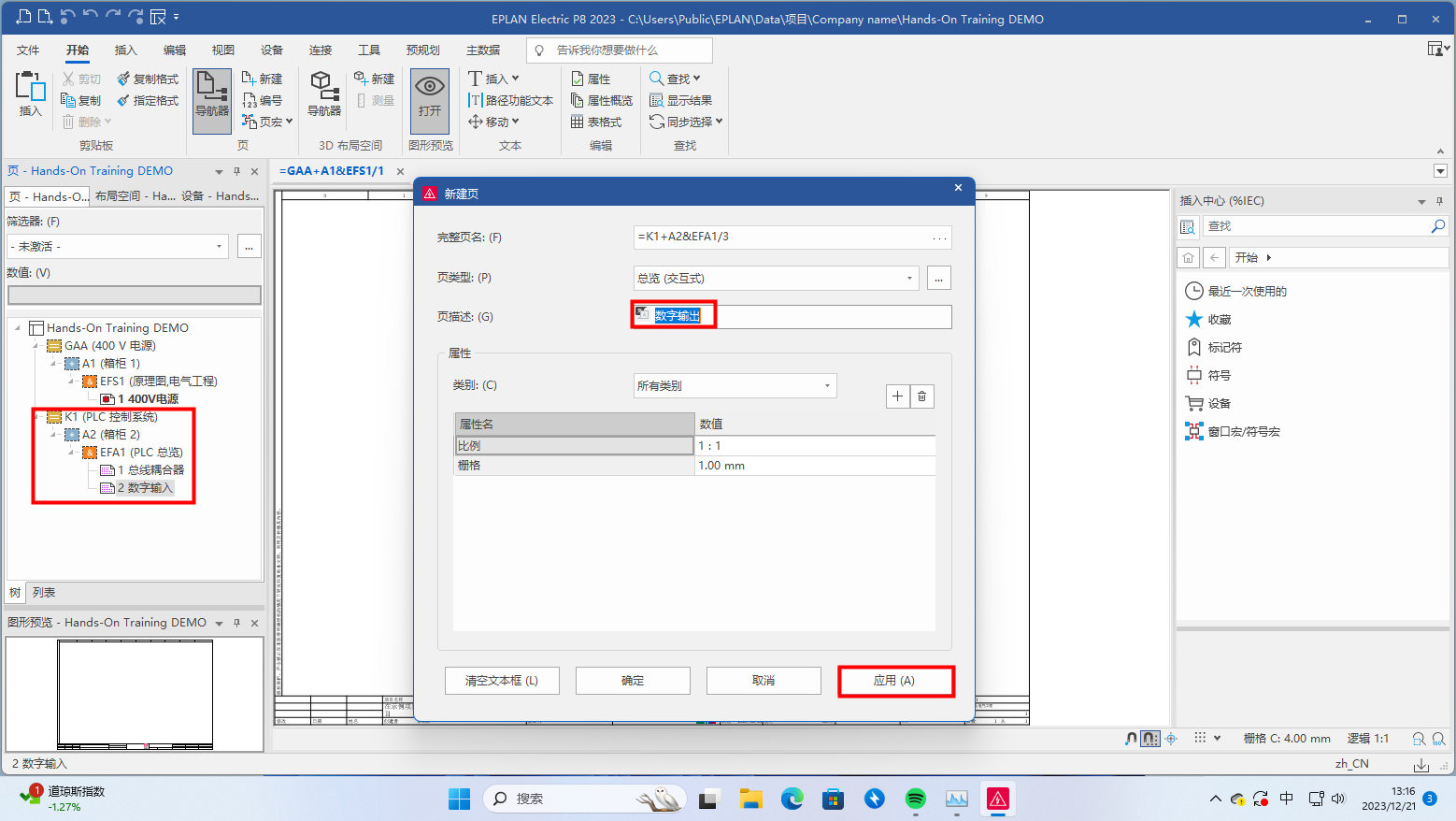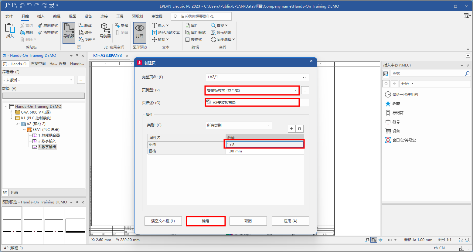 選擇頁類型:安裝板布局;添加頁描述,這里需要修改圖紙比例進(jìn)行放大,點(diǎn)擊【確定】