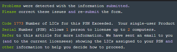 超授權情況:許可協議允許單用戶產品序列號 (PSN) 最多可在兩臺計算機上獲得許可,并且僅供一個用戶使用。