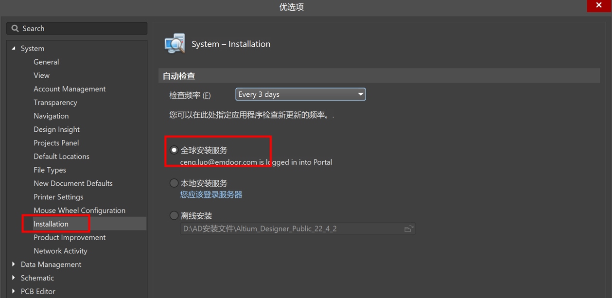 AD軟件內在線升級,首先需要確認優選項設置中幾個地方設置是否準確。