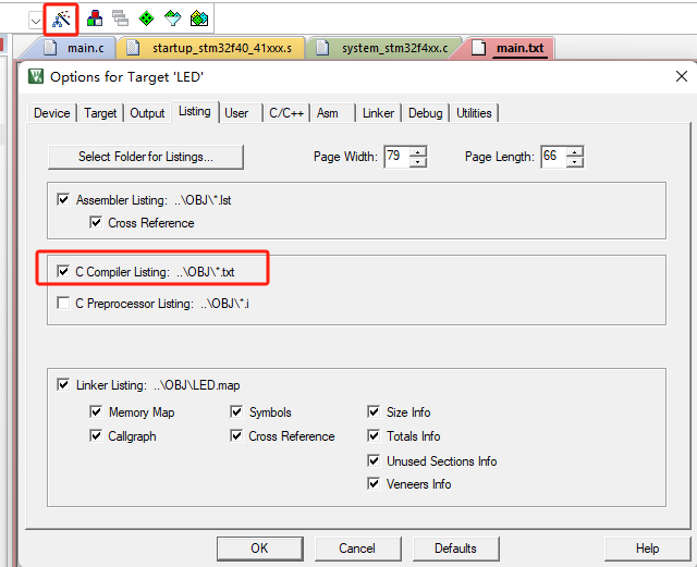 在MDK的options窗口中的Listing欄中有生成對(duì)應(yīng)的源文件的編譯列表(如圖2-1)。但是,對(duì)于這個(gè)生成的列表中包含什么具體的信息就不太清楚了。