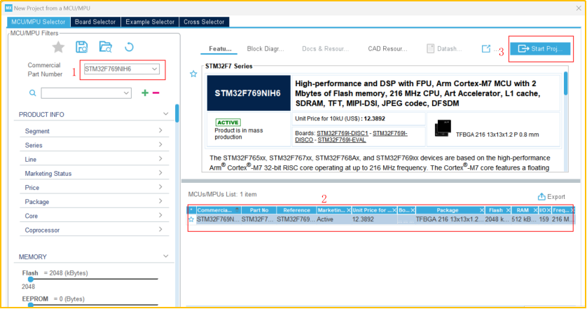 2. 選中開發(fā)板對(duì)應(yīng)的處理器的名稱,選擇“Start Project...”,如下圖3-2所示: