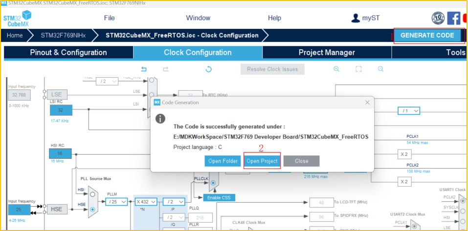 11. 選擇“GENERATE CODE”生成項(xiàng)目生成并打開項(xiàng)目,如下圖3-11所示: