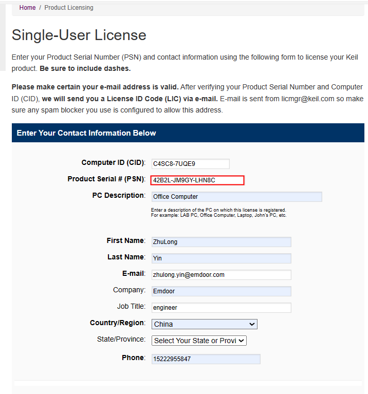 4)、點擊“ Get?LIC via Internet...“,然后單擊OK注冊產品。將打開Keil網站上的License Management頁面。