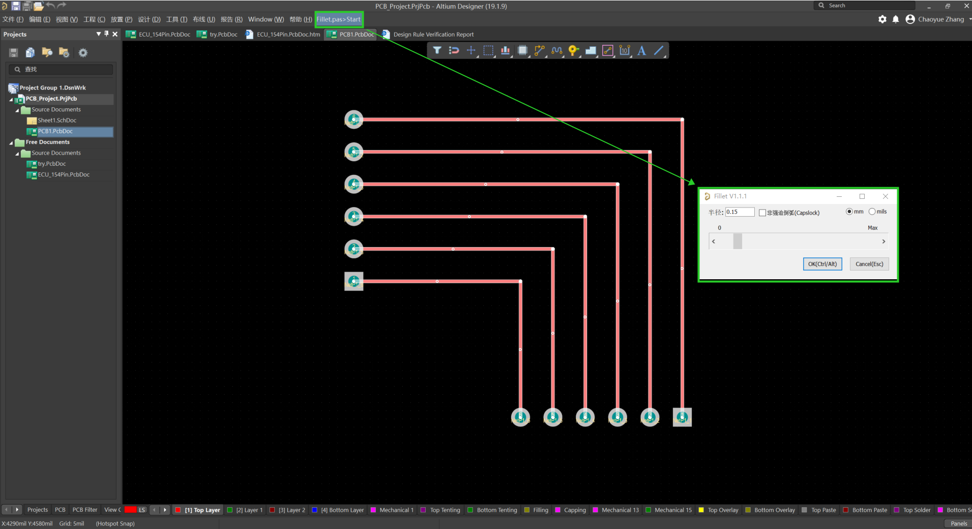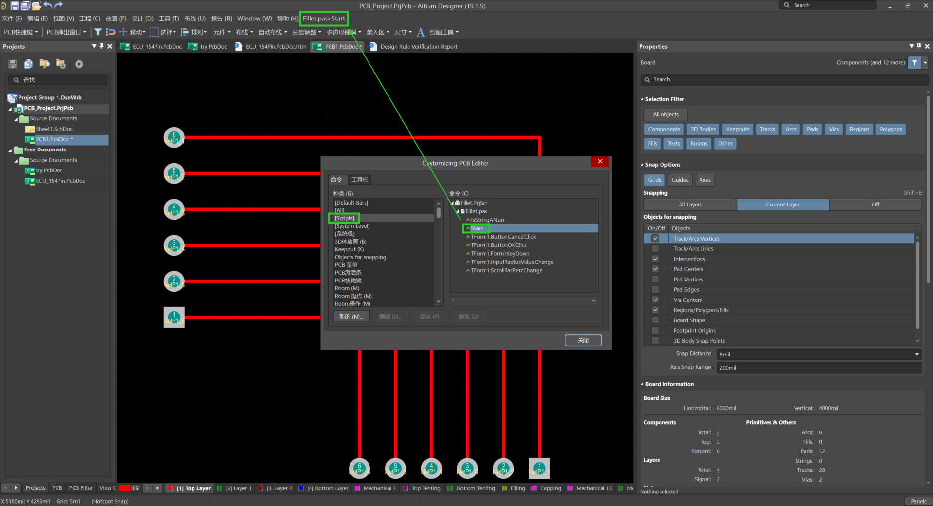 走線批量倒圓角是 AD20 之后引入的功能,但是如何在 AD19(AD20 之前版本)實現該操作?需要使用到腳本文件實現。
