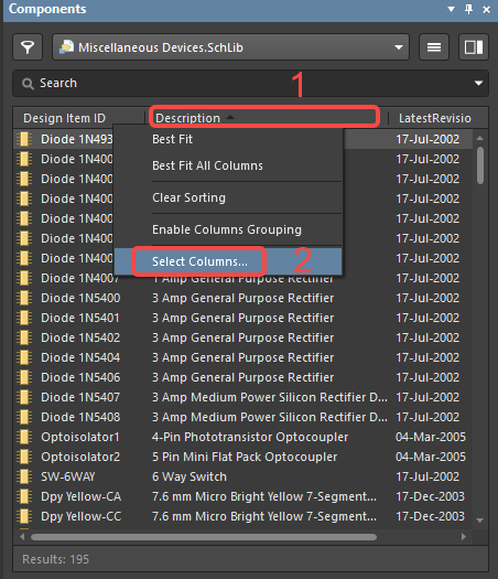 1、在 Component 的窗口中,右鍵點(diǎn)擊 Description ,選擇 Selet Columns...