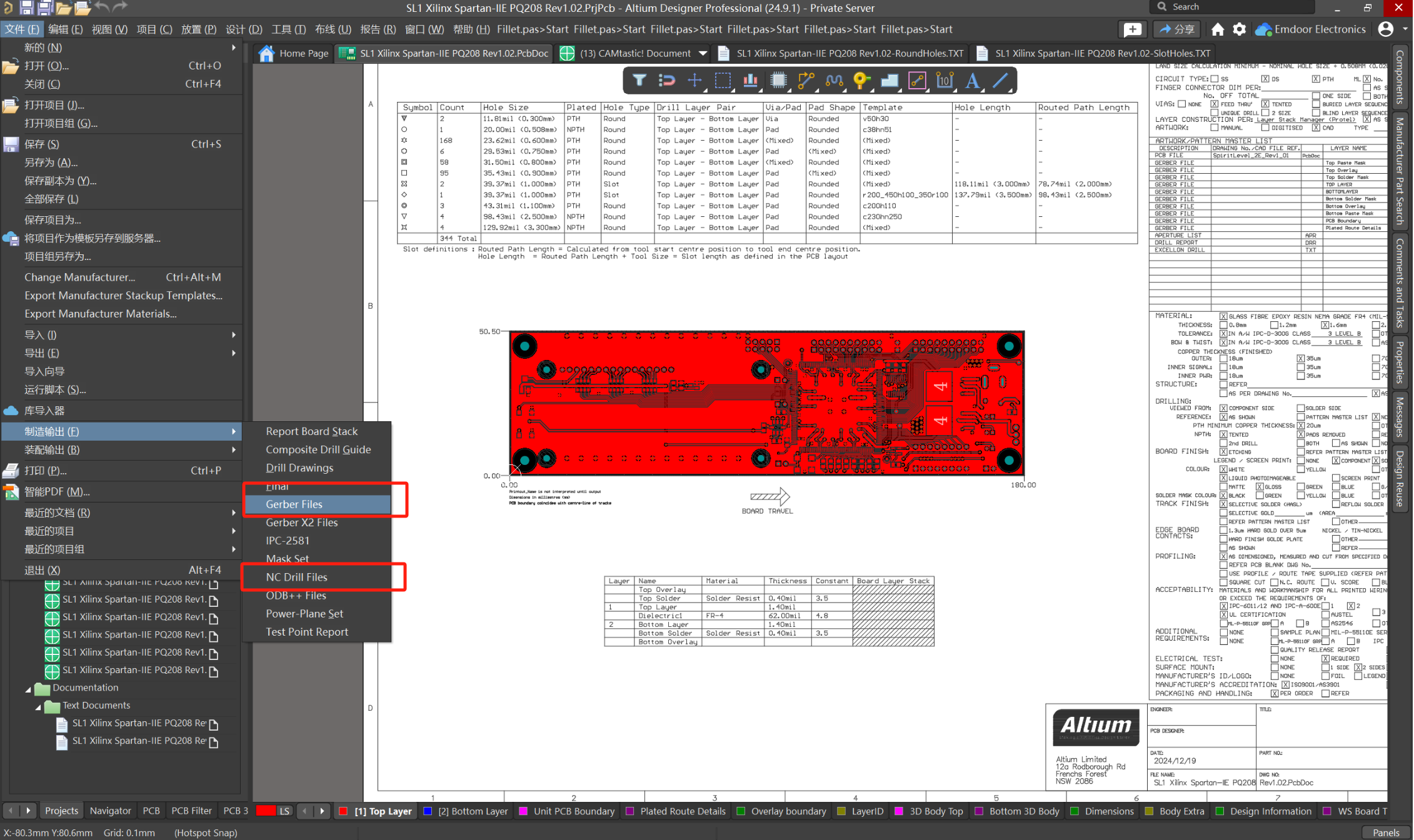 鉆孔文件的比例和Gerber文件一致,輸出完成之后如果是在工程中導(dǎo)出,轉(zhuǎn)換好的Gerber文件和鉆孔文件就會自動在工程下創(chuàng)建一個文件夾并保存。