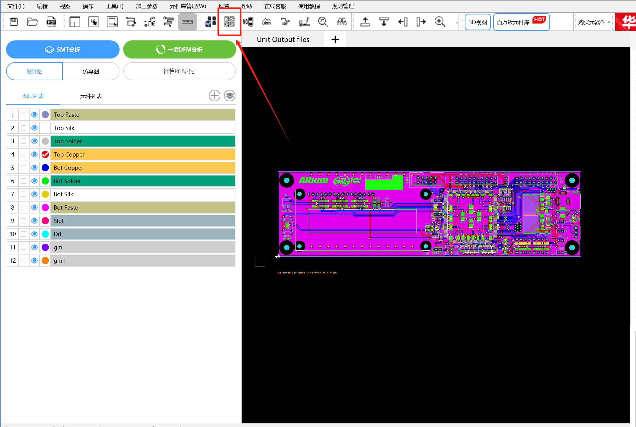 導(dǎo)入Gerber在軟件菜單欄有個如圖所示的圖標,點擊拼板。