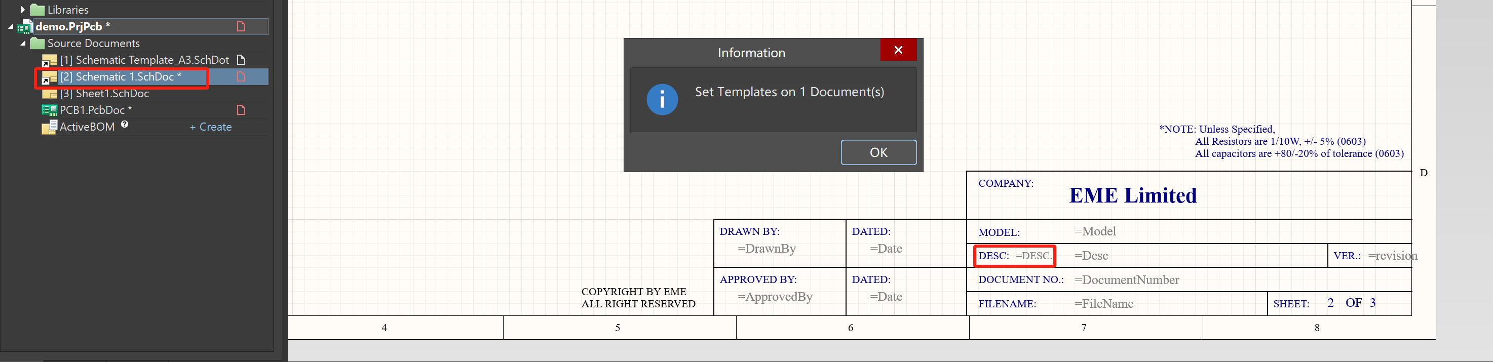 更改TEXT文本,再重新將原理圖模板文件導入原理圖中(*.SchDoc)