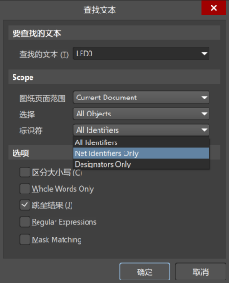 "All Identifiers":同時檢索元件位號、網(wǎng)絡(luò)標號及自由文本