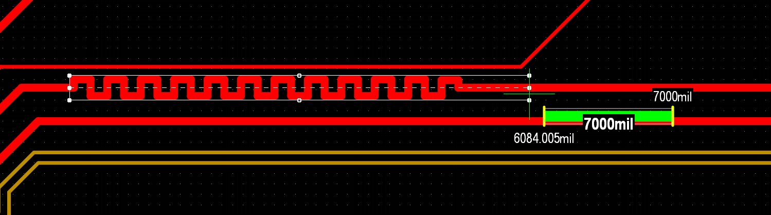 3)、此時長度浮標上數(shù)值變動,左側(cè)為該導(dǎo)線原長度,右側(cè)為目標值,目標值變更為7000,拖動等長線到目標值。