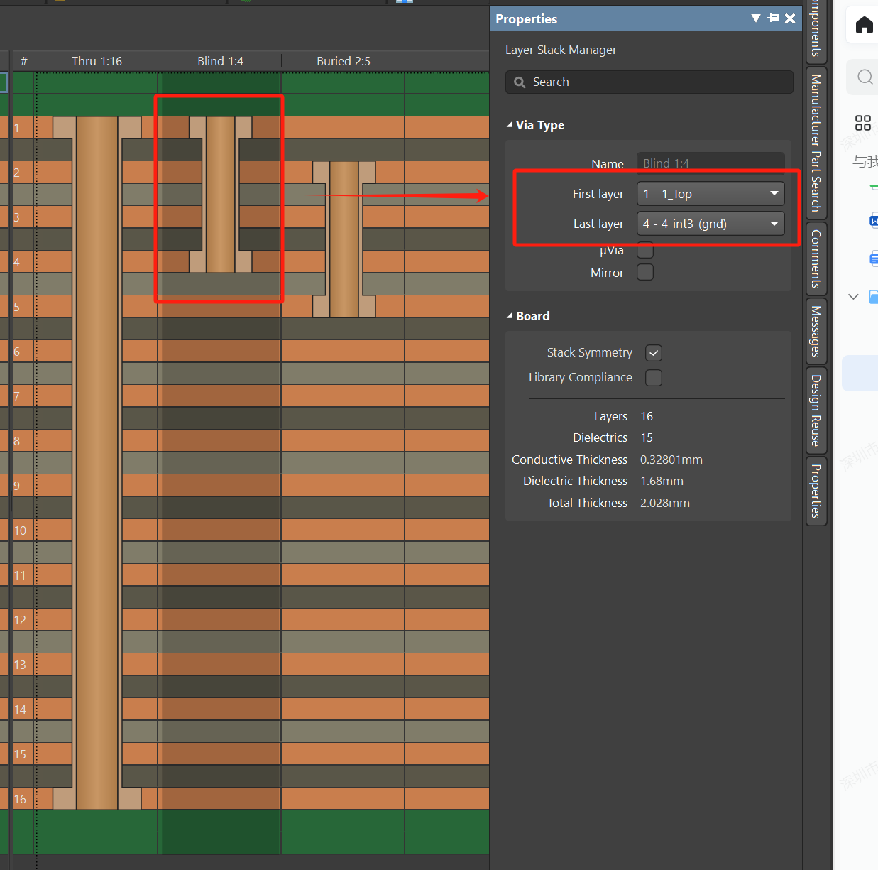 2. 阻抗計(jì)算 :在設(shè)計(jì)過孔時(shí),可以使用阻抗計(jì)算工具或公式,計(jì)算過孔的特性阻抗,并根據(jù)需要進(jìn)行調(diào)整和優(yōu)化。例如,可以使用 Altium Designer 中的阻抗計(jì)算工具,計(jì)算過孔的特性阻抗,并根據(jù)設(shè)計(jì)要求進(jìn)行調(diào)整。