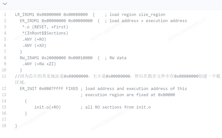 2)、在散步(.sct)文件中使用Fixed關鍵字在接近內存區域的地址位置創建一個根區域。創建之后,對于地址之前的全部空的內存區域都會用“0x00”進行填充。(如圖4-1)