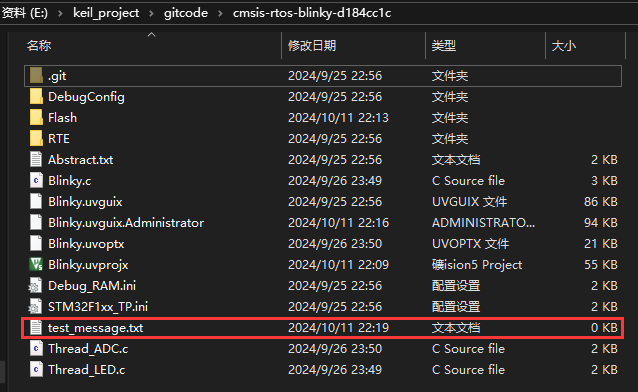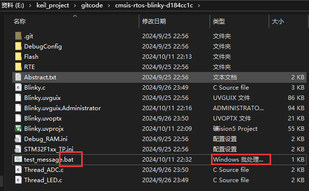 5)、添加完文件以后,需要我們點擊構建或者重構,都可以。構建完成后,即可看到我們在文件中定義的內容:ECHO Blinky.c(48): test: jump to Blinky.c, line 48