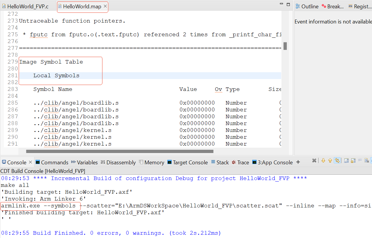 解決ArmDS工程的Map文件無法顯示局部或全局符號的問題。